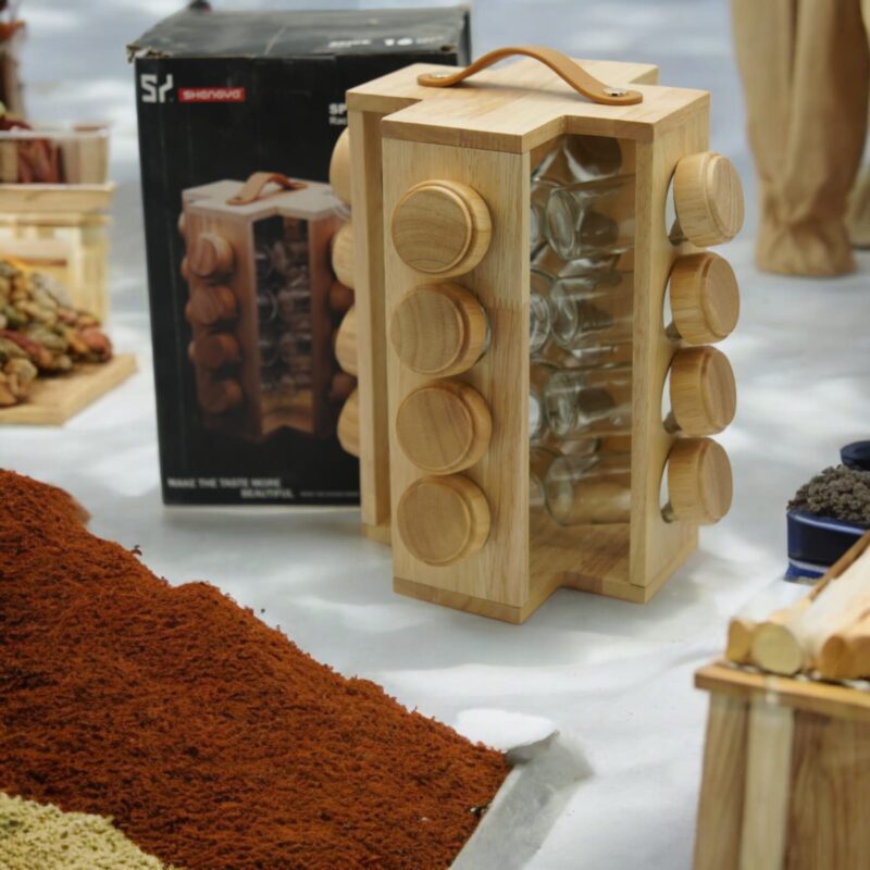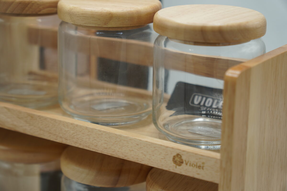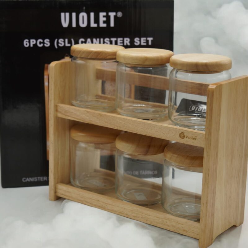 VIOLET 6PCS GLASS SPICES SET WITH WOODEN STAND (5566-W)