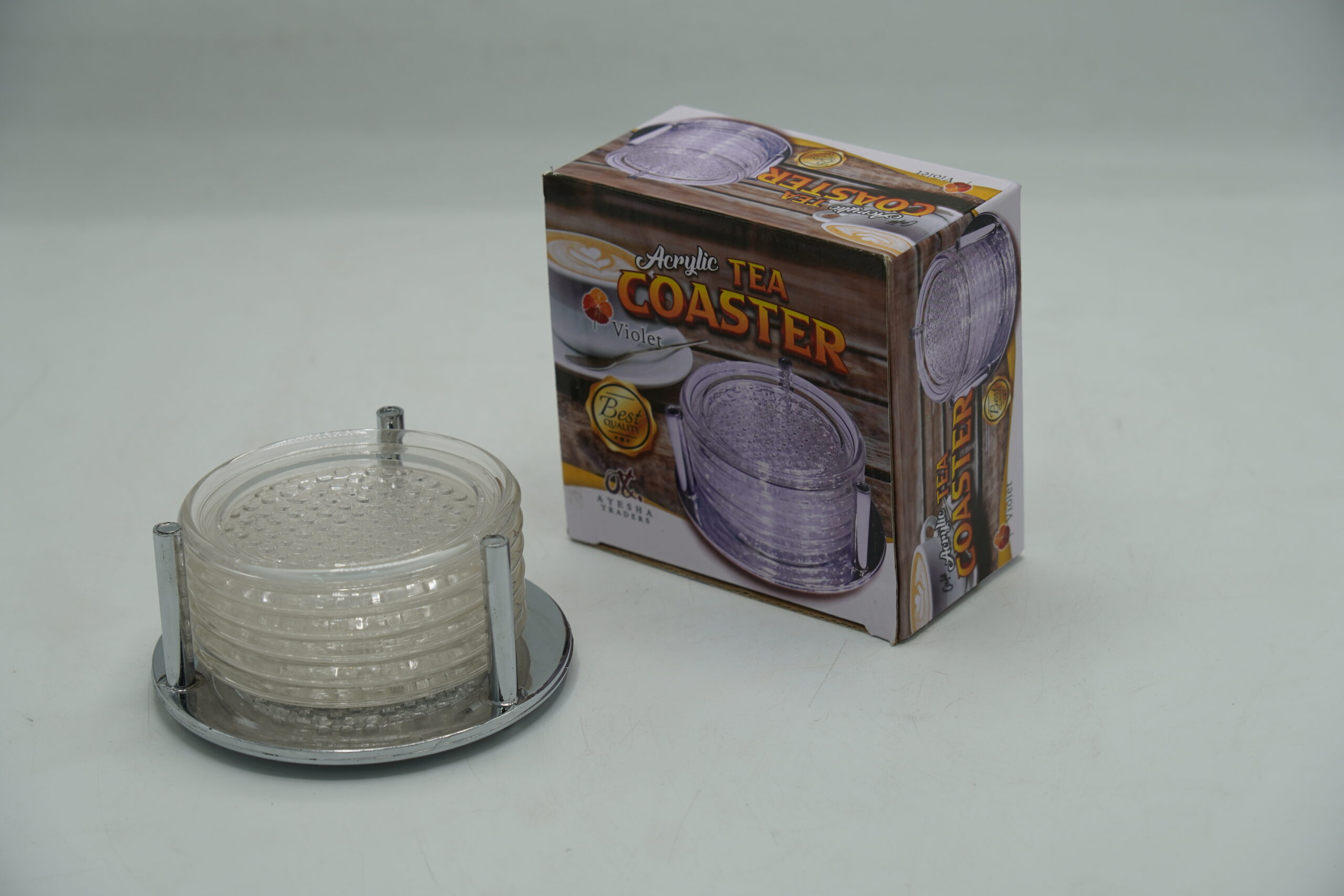 Be the first to review “ACRYLIC 7PCS TEA COASTER SET (SILVER STAND)” Cancel reply