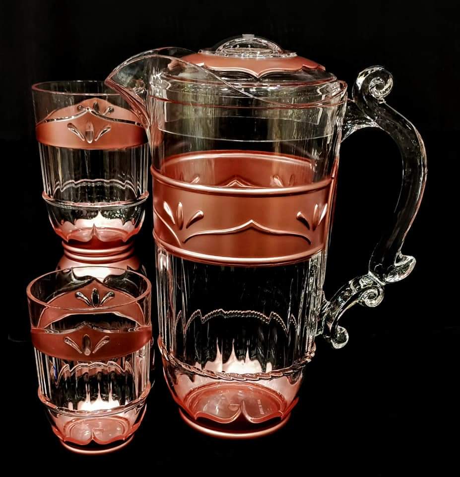 The Acrylic Water Set with Arabic Design includes 1 pitcher and 6 glasses, beautifully finished in golden and copper colors. Made from high-quality acrylic, this set is durable, lightweight, and easy to handle. The elegant Arabic design adds a traditional yet luxurious touch, making it perfect for serving water or beverages at home, during gatherings, or for special occasions. Stylish and practical, it enhances any dining or serving setup.