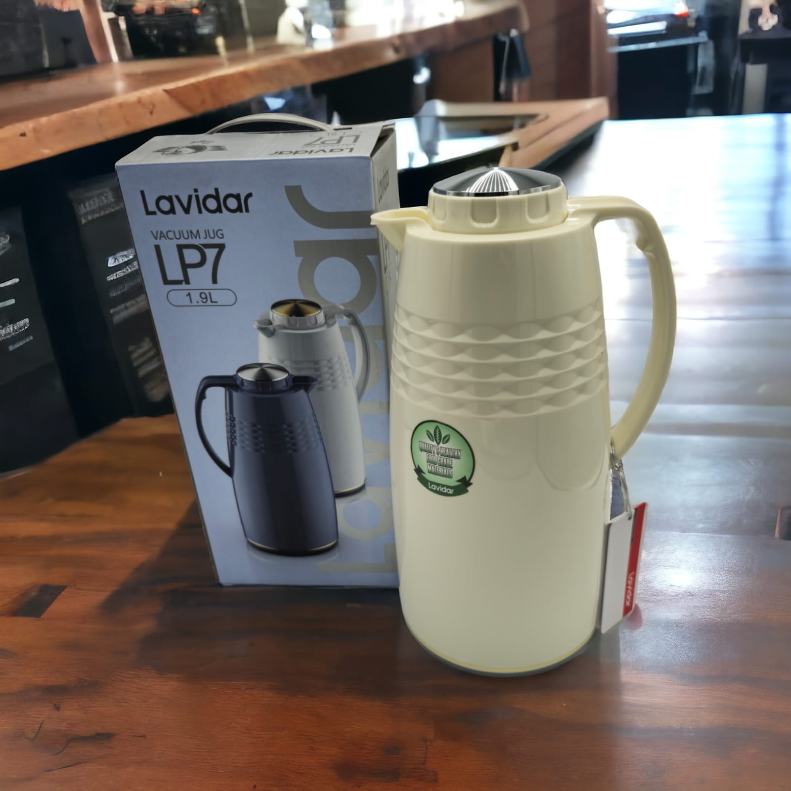Introducing the Lavidar Glass Vacuum 1.9 Litre Thermos LP7 with a Plastic Body – your versatile and dependable companion for keeping your beverages hot or cold, now with enhanced durability and lightweight convenience.